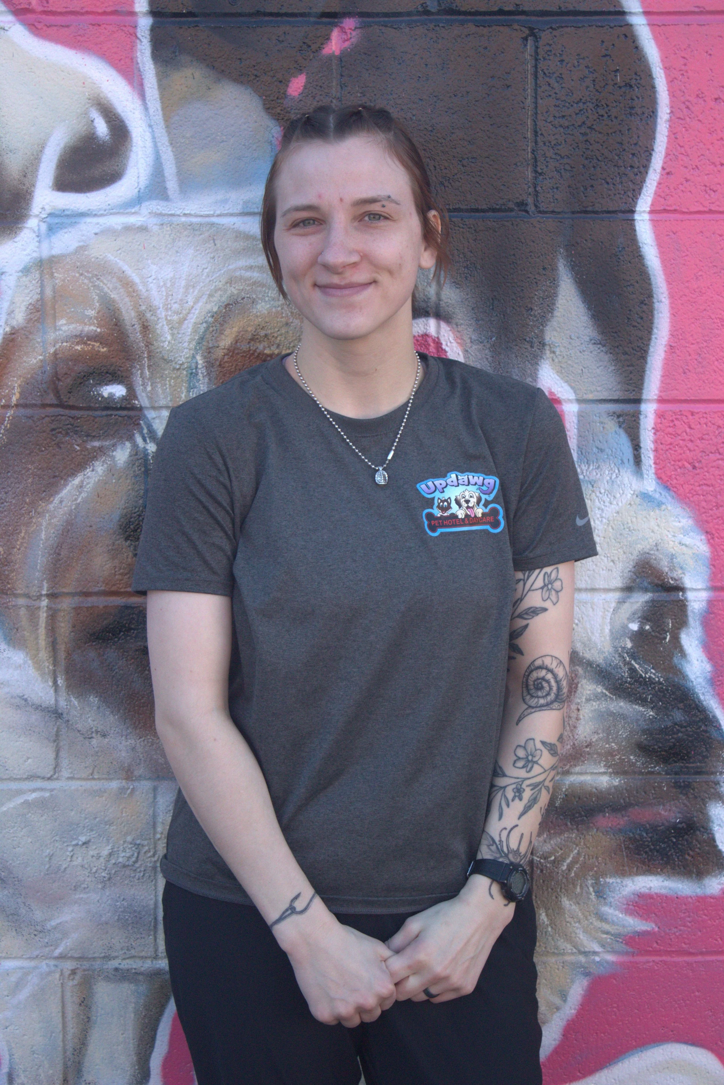 Chris is from Portland, having graduated with a degree in organismal biology and sociology. In his free time he likes to go hiking, hang out with friends, and play board games. He loves animals and is grateful to work with them here at Updawg and hang out with these amazing pups every day.
