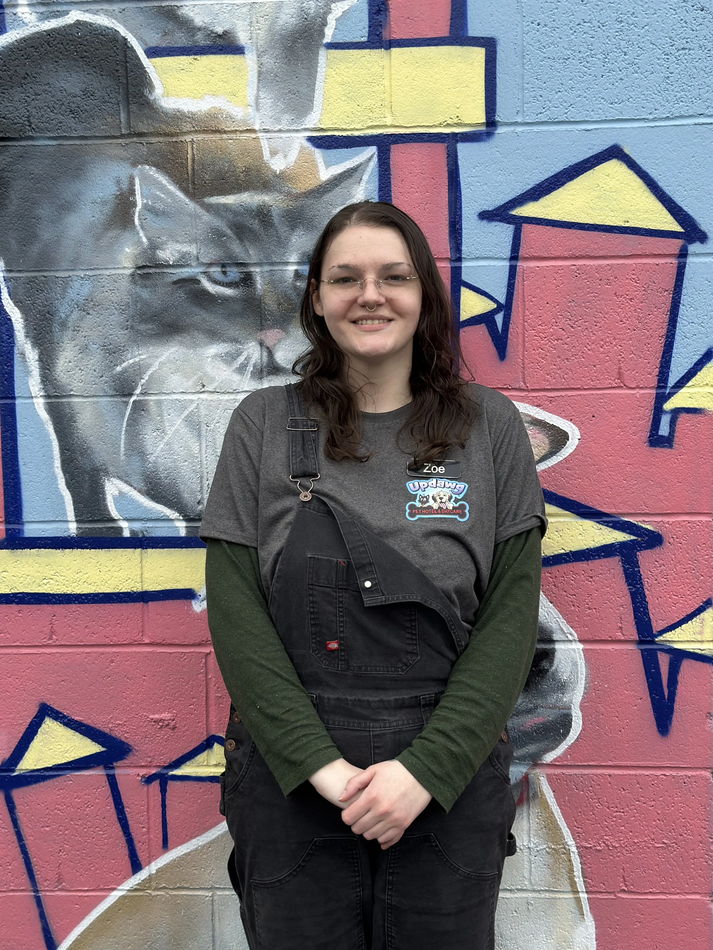 Zoe never got the chance to grow up with pets. While she has them now, she still describes working at Updawg as "making up for lost time". When she isn't working you can find her at home with her animals or playing / watching ttrpgs.
